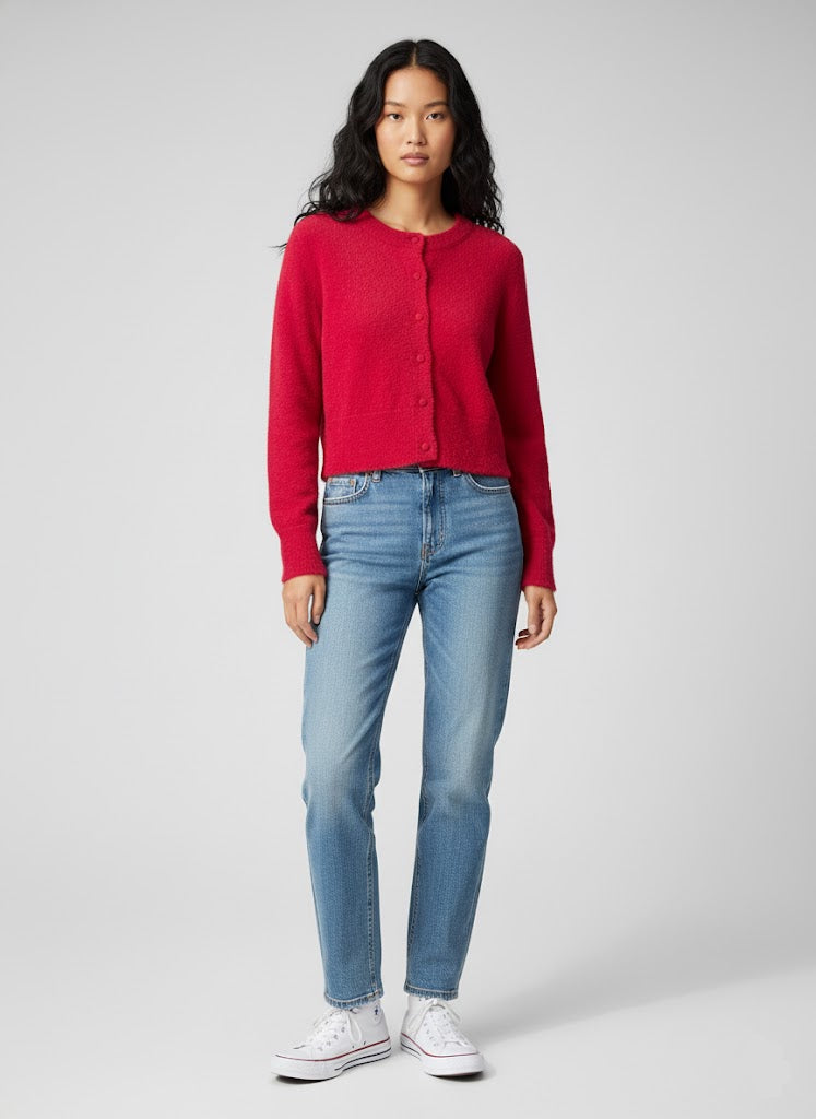 Kış stilinize derinlik katan, lüks ve sıcak bir dokunuş. Bu bordo hırka, zamansız kesimi ve olağanüstü yumuşak triko dokusuyla sizi sarar.