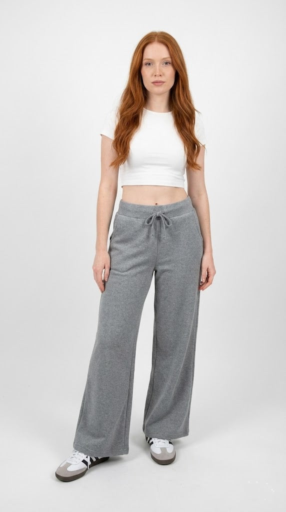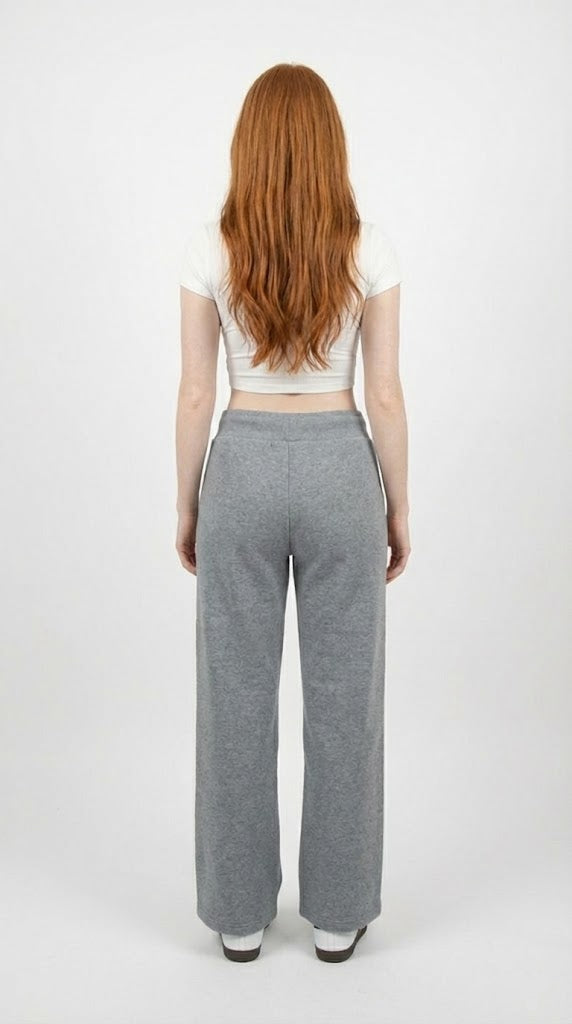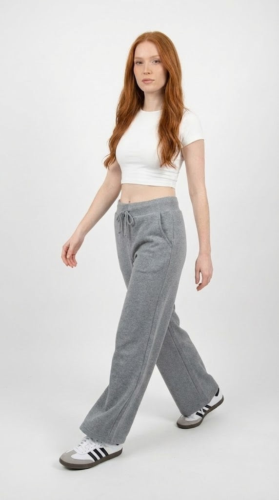 Ev konforunu lüks bir dokunuşla sokağa taşıyın. Bu gri eşofman altı, modern geniş paça (wide-leg) kesimi ve "soft touch" teknolojisine sahip kumaşıyla athleisure stilinin en şık halini sunuyor.