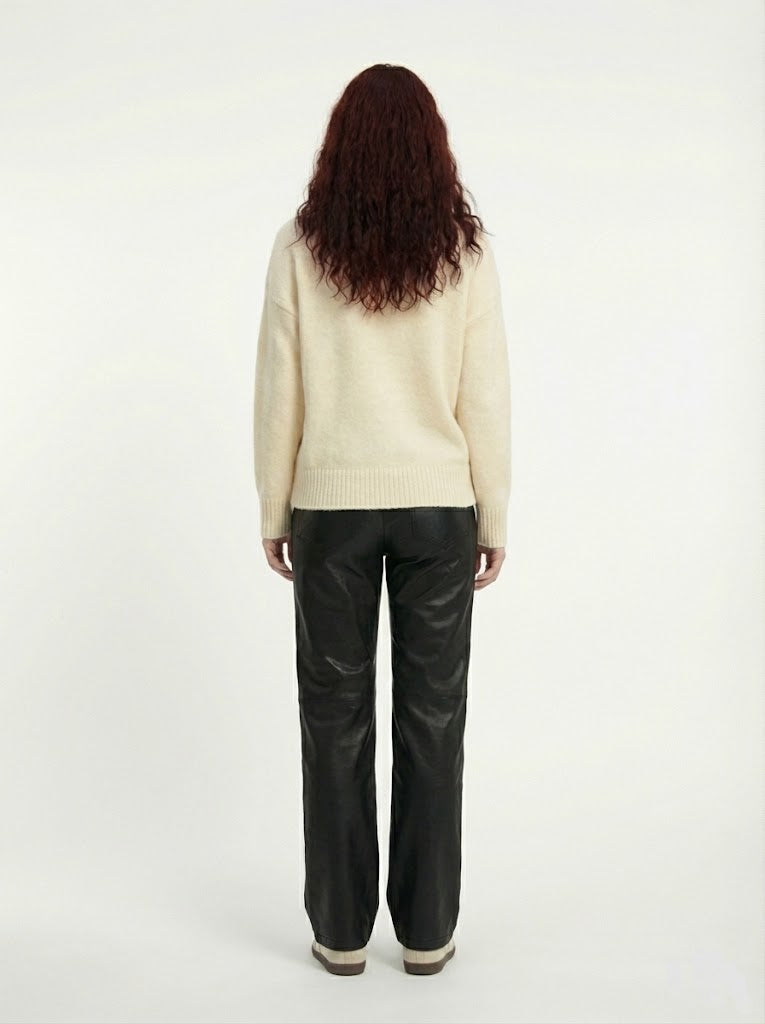 Krem renginin aydınlık ve lüks tonu, kış gardırobunun koyu renklerine mükemmel bir tezat oluşturur ve yüzünüze ışıltı katar. Yakada, manşetlerde ve etek ucunda bulunan ince fitilli (ribana) örgü detayları, kazağın formunu korumasına yardımcı olurken tasarıma zarif bir doku kazandırır.