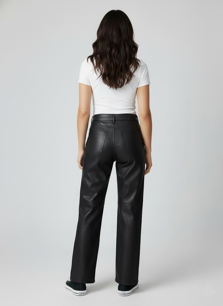 Gardıropların asi klasiği, modern ve kusursuz bir kalıpla yeniden tasarlandı. Bu siyah deri pantolon, duruşuyla stilinizi anında bir üst seviyeye taşır.